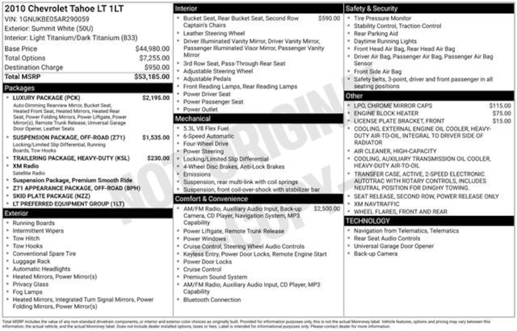 2010 Chevrolet Tahoe LT Summit White 4WD 6-Speed Automatic Electronic with Overdrive Vortec 5.3L V8 SFI Flex Fuel Iron Block