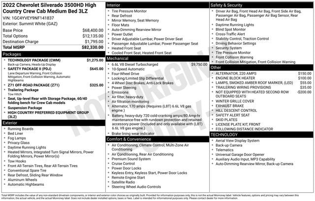 2022 Chevrolet Silverado 3500HD High Country Summit White 4WD 10-Speed Automatic Duramax 6.6L V8 Turbodiesel