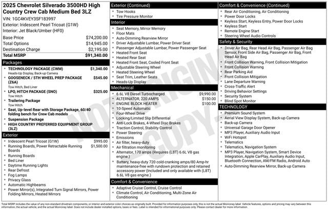 2025 Chevrolet Silverado 3500HD High Country Iridescent Pearl Tricoat 4WD 10-Speed Automatic Duramax 6.6L V8 Turbodiesel
