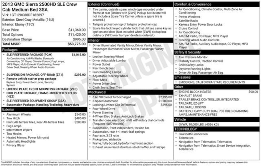 2013 GMC Sierra 2500HD SLE Steel Gray Metallic 4WD Allison 1000 6-Speed Automatic Duramax 6.6L V8 Turbodiesel
