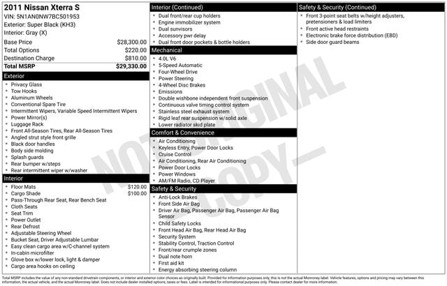 2011 Nissan Xterra S Super Black Metallic 4WD 5-Speed Automatic 4.0L V6 DOHC 24V