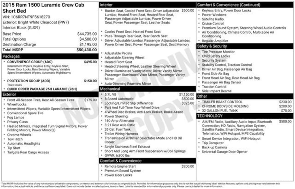Recent Arrival!2015 Ram 1500 Laramie Bright White Clearcoat 4WD 8-Speed Automatic HEMI 5.7L V8 Multi Displacement VVTAwards:* 2015 KBB.com Best Buy Awards Finalist * Green Car Journal 2015 Green Truck of the Year * 2015 KBB.com 15 Best Family CarsBased on 2017 EPA mileage ratings. Use for comparison purposes only. Your mileage will vary depending on how you drive and maintain your vehicle, driving conditions and other factors.