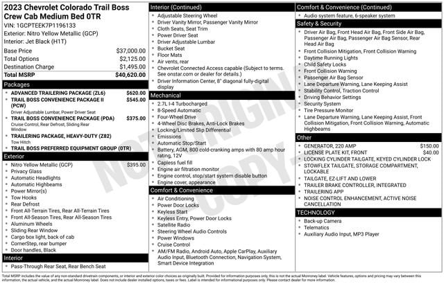 2023 Chevrolet Colorado Trail Boss Nitro Yellow Metallic 4WD 8-Speed Automatic 2.7L Turbo